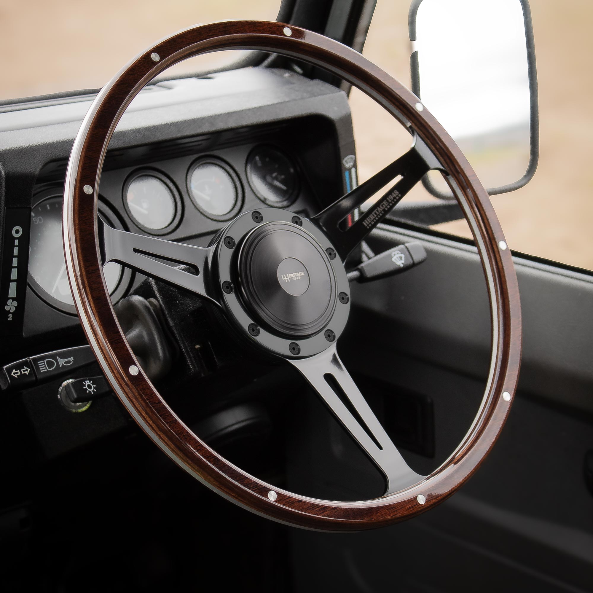 The Bramble 15″ Leather Rim by Heritage 1948 has been developed around the classic spirt of the Land Rover and continues our uncompromising commitment to quality aftermarket parts. The Mirror Polished Body of the Steering Wheel is forged from durable 6061 Billet Aluminium. This is contrasted by a thick comfortable Black Leather Stitched Rim. The Brendon Steering Wheel is guaranteed to improve the interior of any Land Rover Series or Defender.